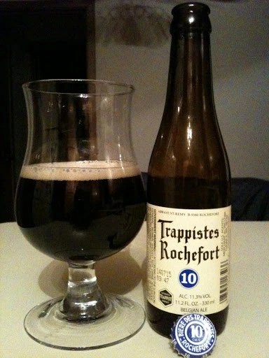 Men dette er ikke lige tilfældet hos os, da vi selvfølgelig skal til at lægge os ud med den hidtil kraftigste øl, nemlig Trappistes Rochefort 10 på hele 11,3 %.