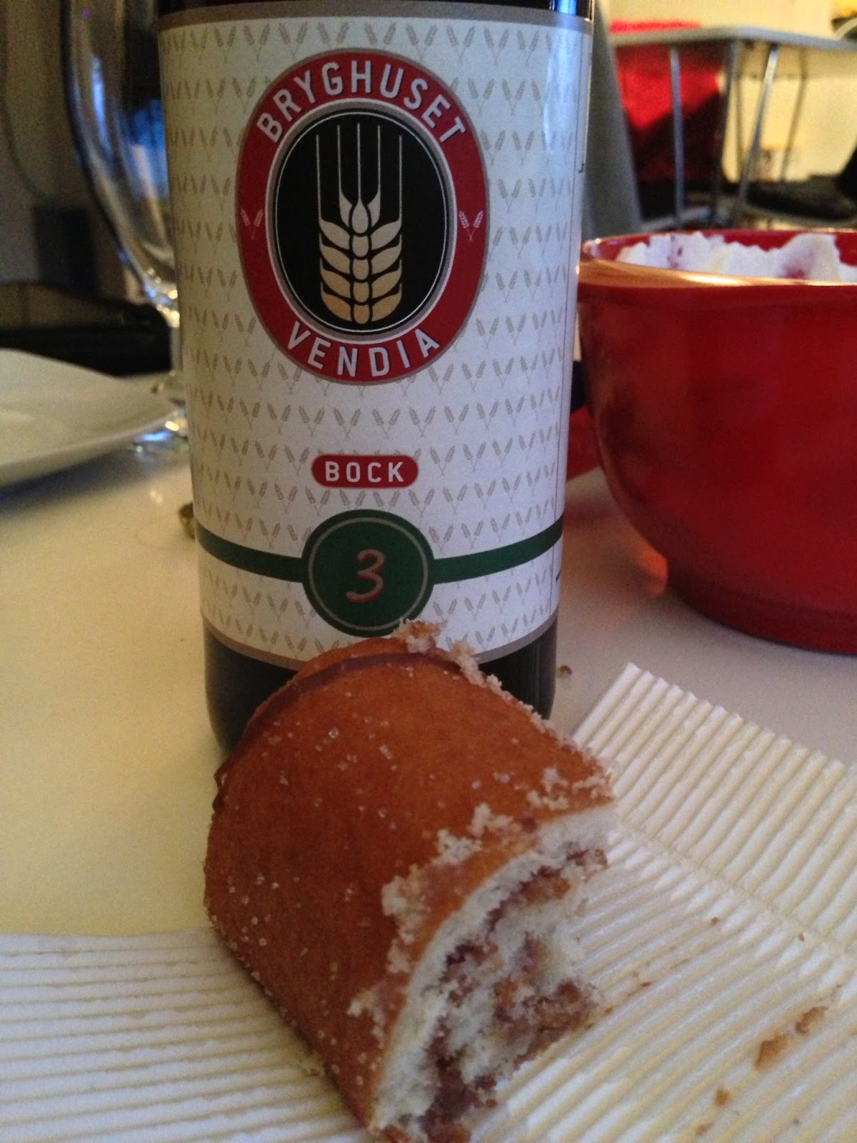 Mathias har anskaffet tre øl fra Bryghuset Vendia, beliggende i hans hjemstavn Hjørring. Det er Bock, Schwarzbier og Vendelbobajer. Iaften smager vi på Bock. Øllene kan kun købes i Hjørring.