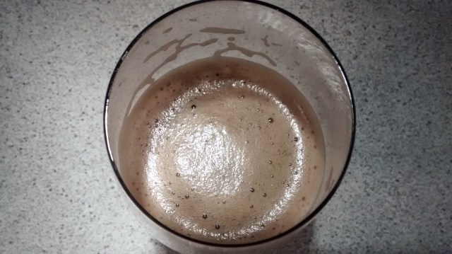Næsten sort er øllen. Lidt lys skinner igennem og på toppen befæster sig et kraftig skum. Nu er skumkronen væsentlig mindre, men det hvid-brunlige skum ligger stadig i en lillefingers tykkelse. Bemærk desuden hvor cremet skummet er, næsten som en Guinness.
