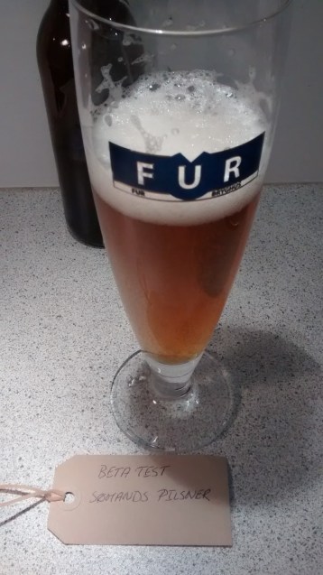 Det er en flot øl, næsten gennemsigtig (nu fik jeg lidt gær med, og nu er den ret uigennemsigtig) og med et luftig og fyldigt skum. Lige som en pilsner skal være det.