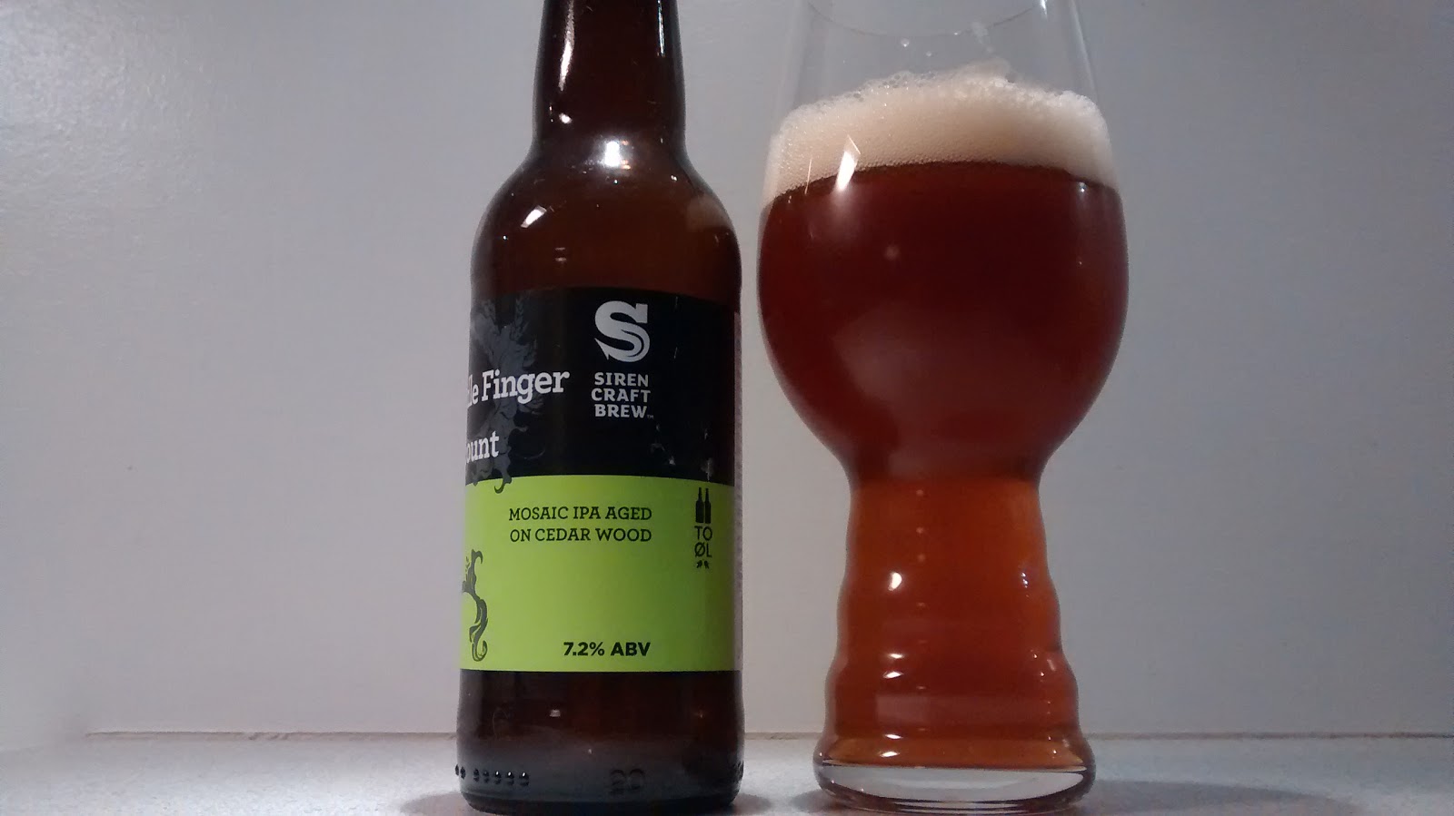 Middle Finger Discount: A 100% Mosaic IPA aged on Cedar Wood. Middle Finger Discount is an IPA packed full of tropical fruit and blueberry flavours with layers of cigar box and spice. The third of three is a single hop series collarboration with To Øl, this IPA is full flavoured with a serious attitude problem.