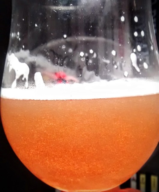 Øllen er ufattelig flot og jeg kan desværre ikke tage et billede der yder øllen retfærdighed. Jeg kan se med det blotte øje bobler stige til vejrs i øllet. Gærrester flyder ligeledes rundt i øllet, og spiller flot sammen med øllets gyldenorange farve.
