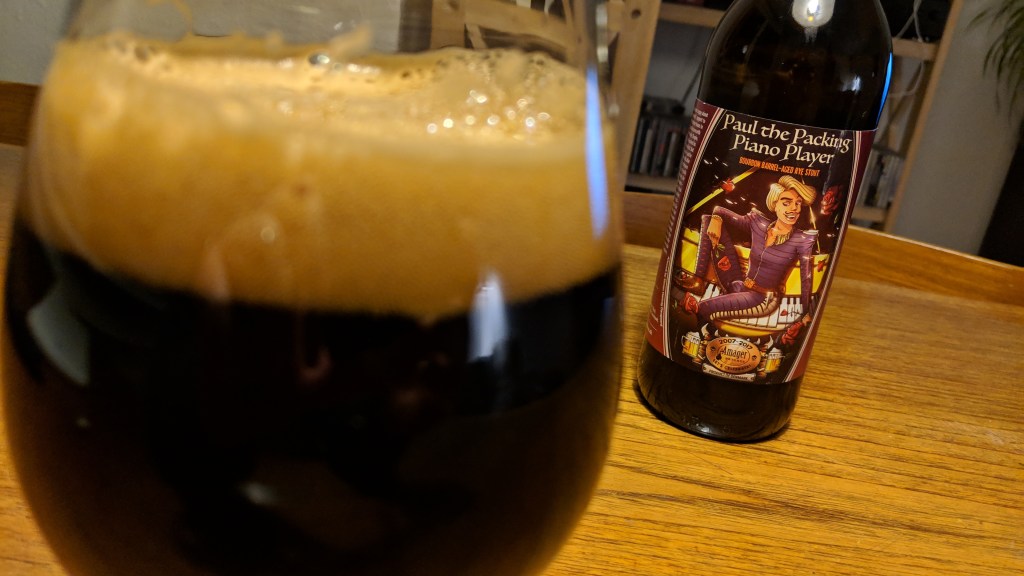 Paul The Packing Piano Player er en Rye Stout på 8,3% vol. der har ligget på Bourbon fade.