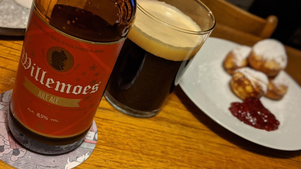 Willimoes Jule Ale dufter af malt, kaffe og lette vinøs anstrøg. Den er ikke helt så dum endda.