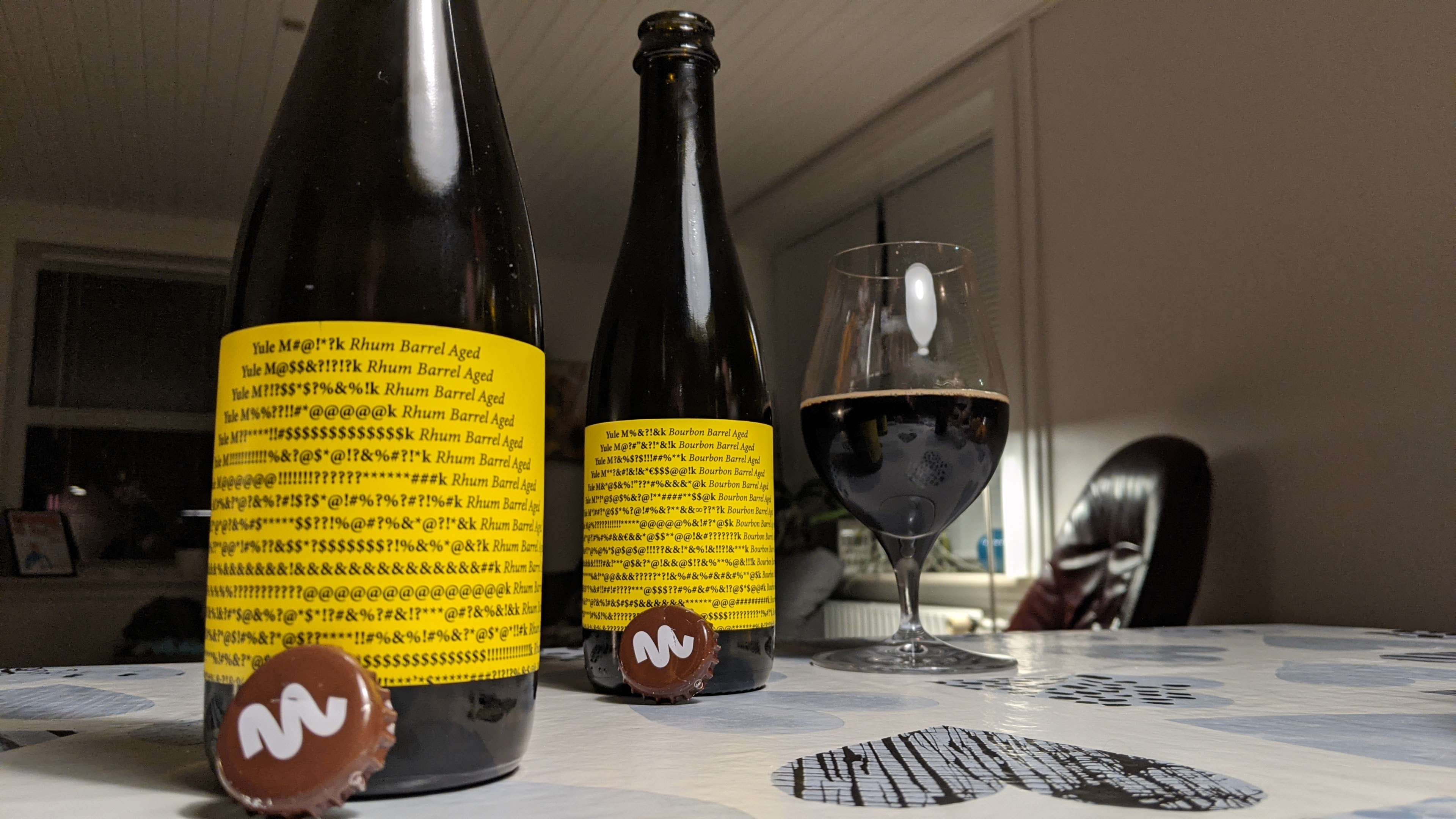 I år udkom tre varianter: Jule Malt (13%), Yule M%&?!&k Bourbon Barrel Aged 2020 (16,3%) og Yule M#@!*?k Rhum Barrel Aged 2020 (17,1%). Du har nok bemærket at øllene har overgået en mindre navneforandring og været en tur til numerolog, da Mejeriforeningen (eftersigende) skulle have fået ondt i r**en over at øllene hedder noget med mælk.