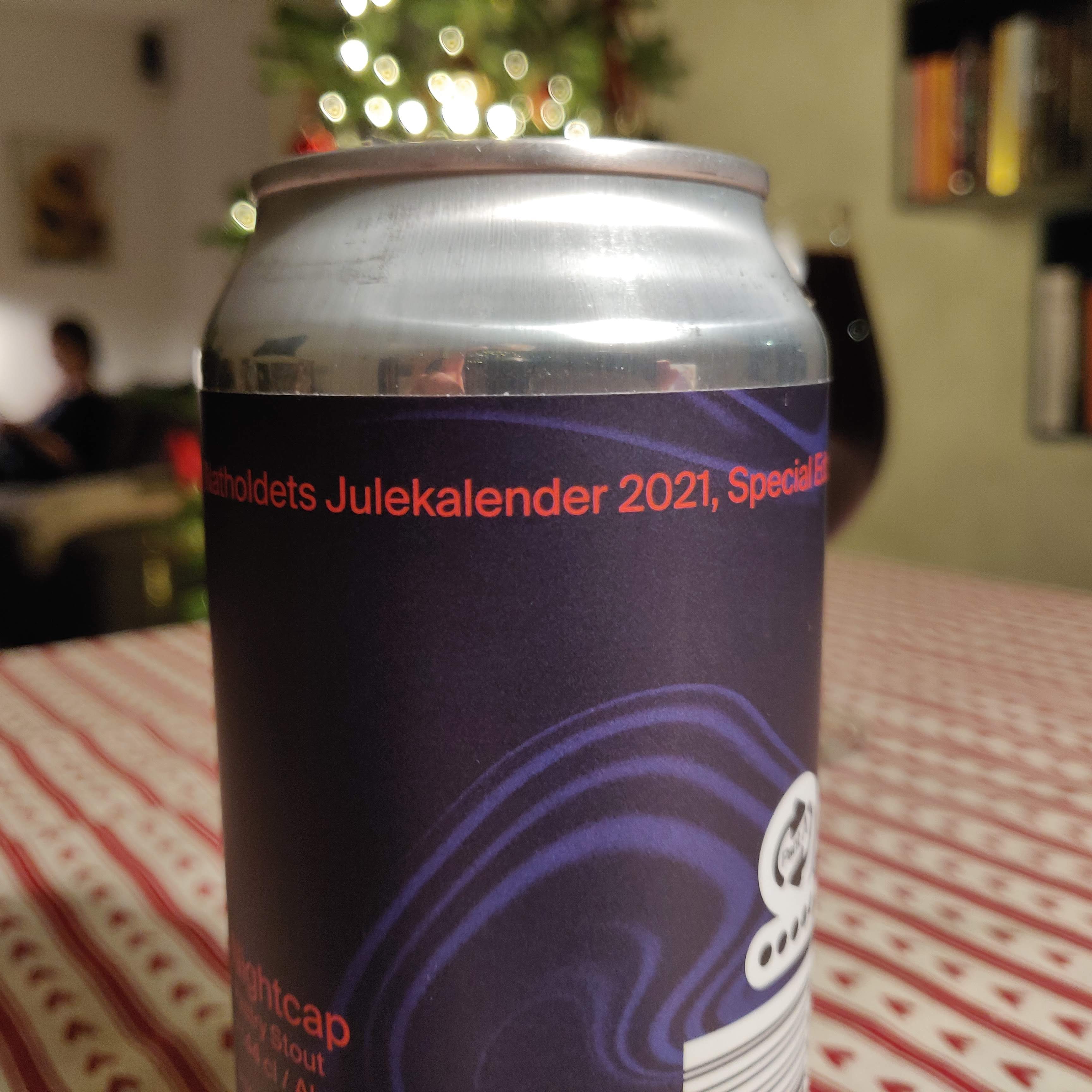 Nightcap kommer i en flot dåse med Natholdets farver i blåt og rødt. Øllet er sort, da dette er en Pastry Stout, det er så også det eneste der minder om en Stout. Jeg kunne ligeså godt have skænket mig en cola, for skummet forsvandt omtrent lige så hurtigt. Det synes jeg ikke er videre tiltalende.