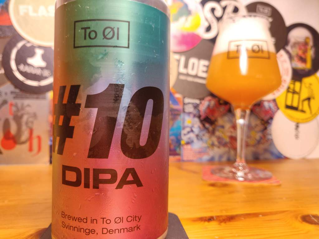 #10 DIPA er en flot dåse, med farver der giver et flot genskin i lyset. Øllet står flot i mit nye To Øl tekuglas, som også er rigtig dejligt at drikke af.