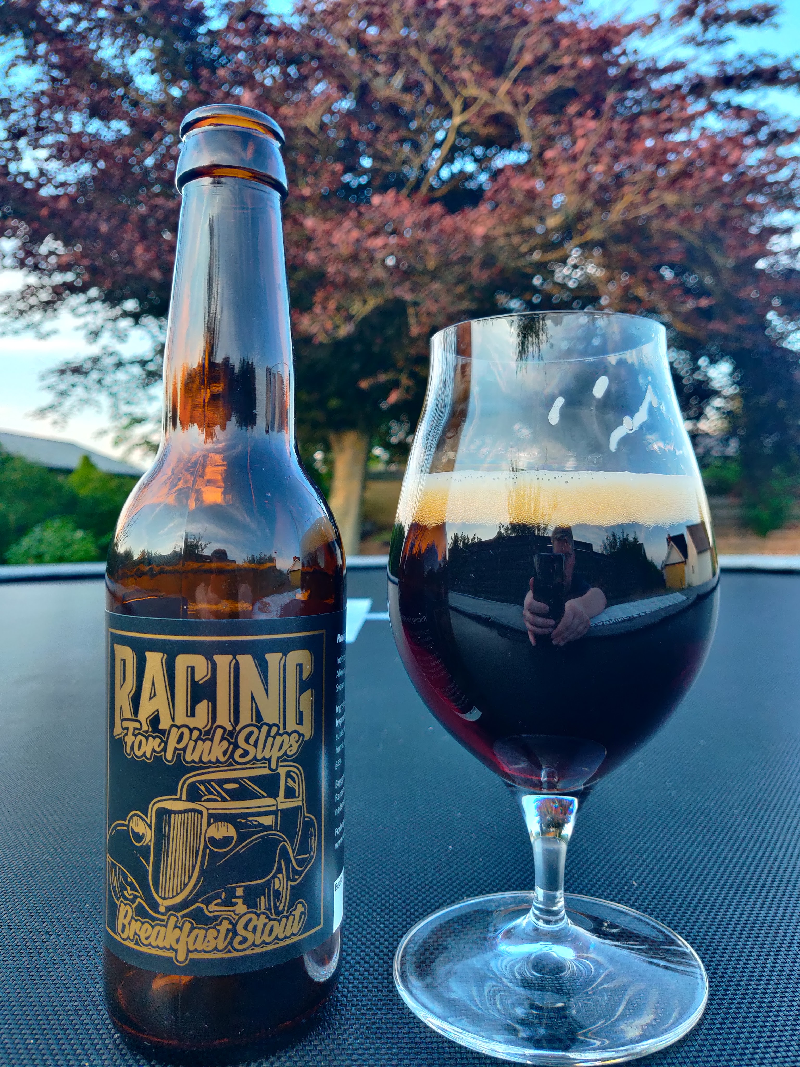 Jeg fornemmer et amerikaner tema hos Rockabilly Brew. Racing For Pink Slips er en Breakfast Stout så tykt som motorolie. En øl der samlingens med V8-motorens brøl, en øl brygget med uanstændige mængder malt , havre, cacaonibs, kaffe, vanilje og cassonade sukker (belgisk kandis).