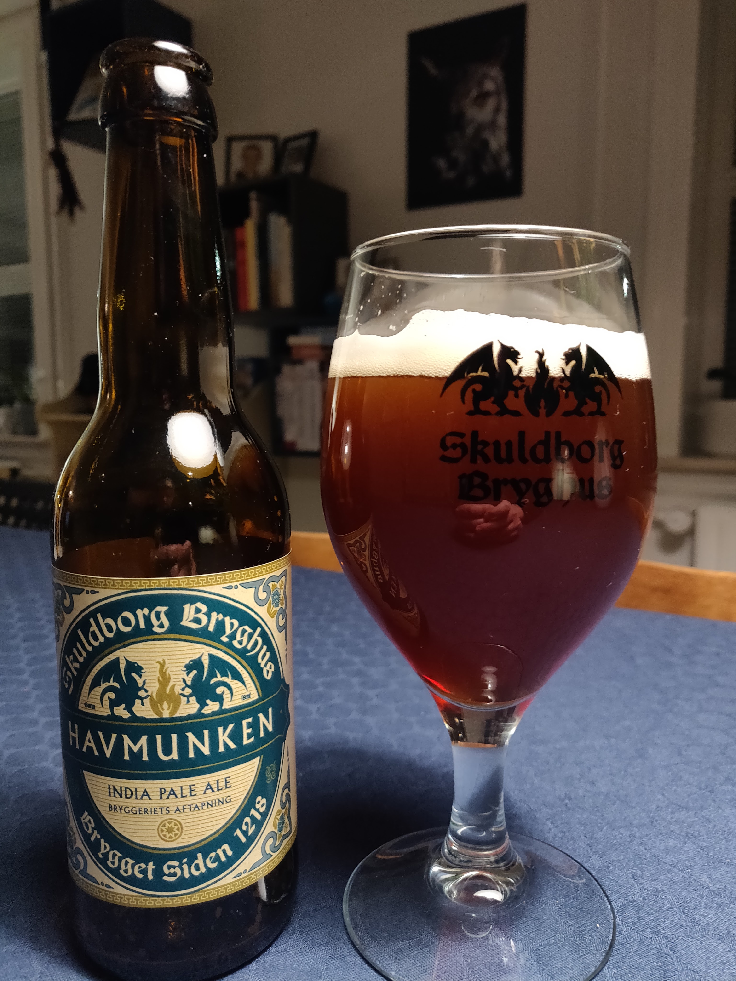 Én øl mangler jeg at anmelde fra Skuldborg Bryghus, og det er Havmunken, en IPA 5% vol. brygget med vand, bygmalt, havre, humle og gær.