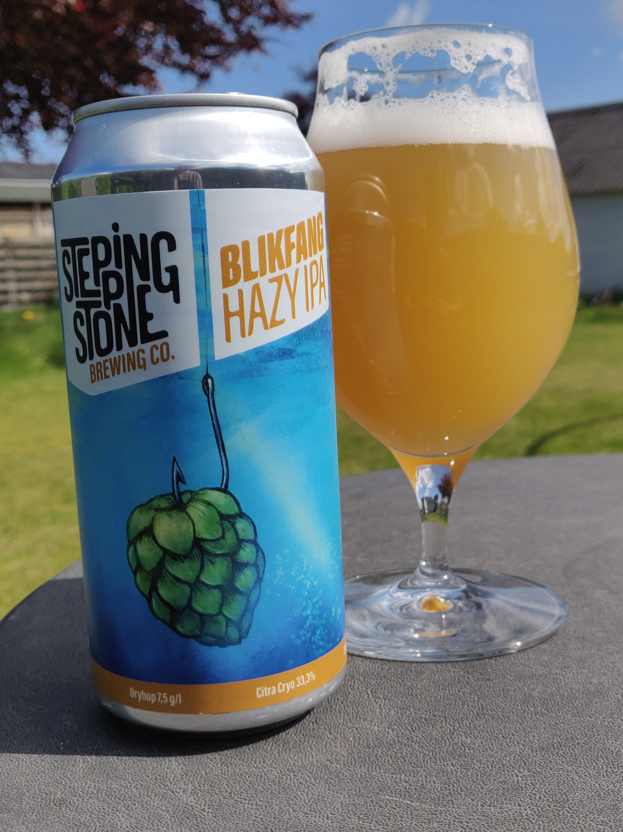 Det er en række spændende øl, som jeg glæder mig til at smage på. I dag smager jeg på Blikfang, som er Stepping Stones nyeste øl på markedet. En New England IPA på 5,5% brygget med Citra Cryo, El Dorado og Sabro.