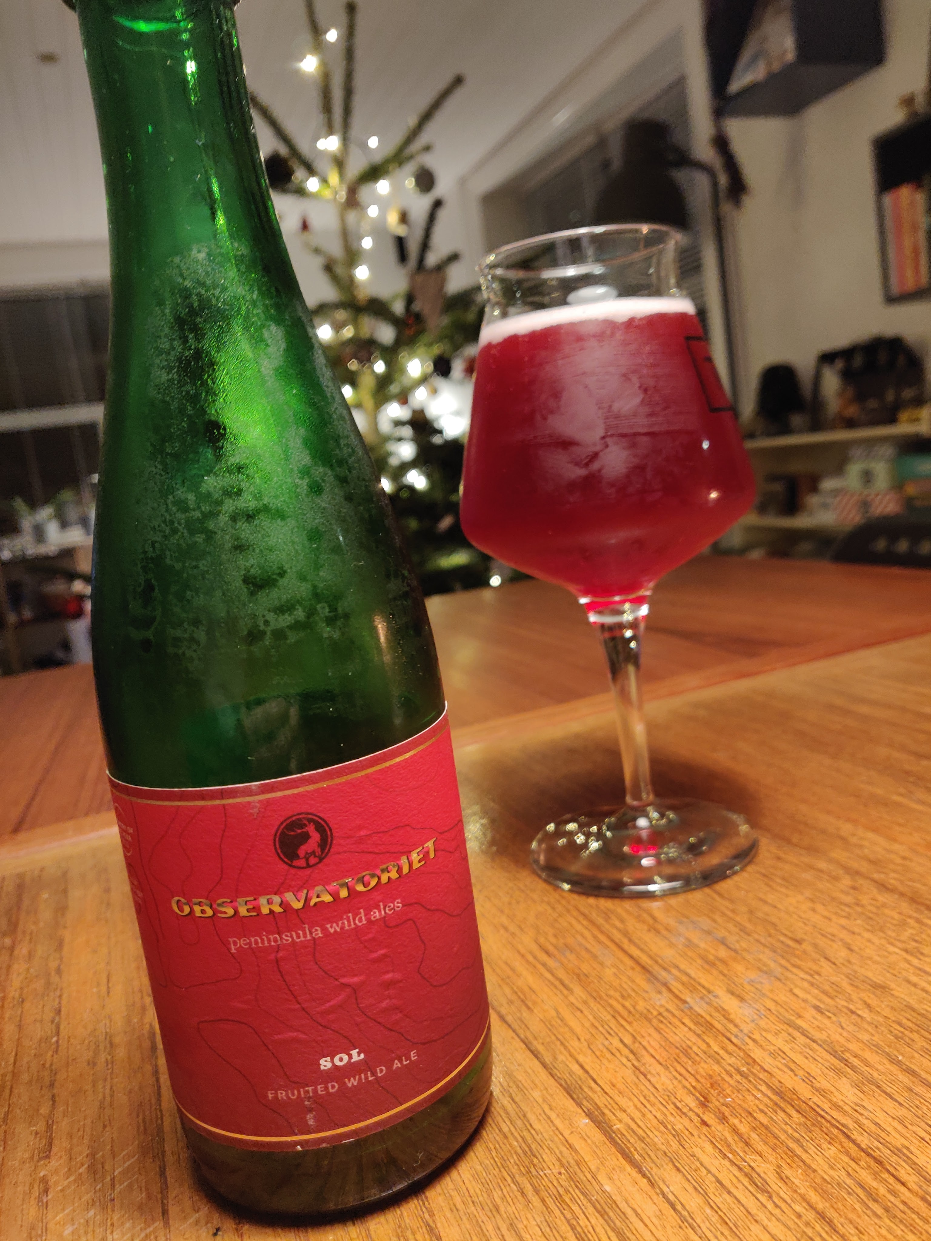 Sol hedder den, og øllen har ligget på Chardonnay fade i 12 måneder sammen med solbærsaft og Observatoriets egen brettanomyces gærkultur. Ydermere er Sol blandet med Observatoriets Tableau (vildgæret Table beer) for at give Sol en omgang friskhed.